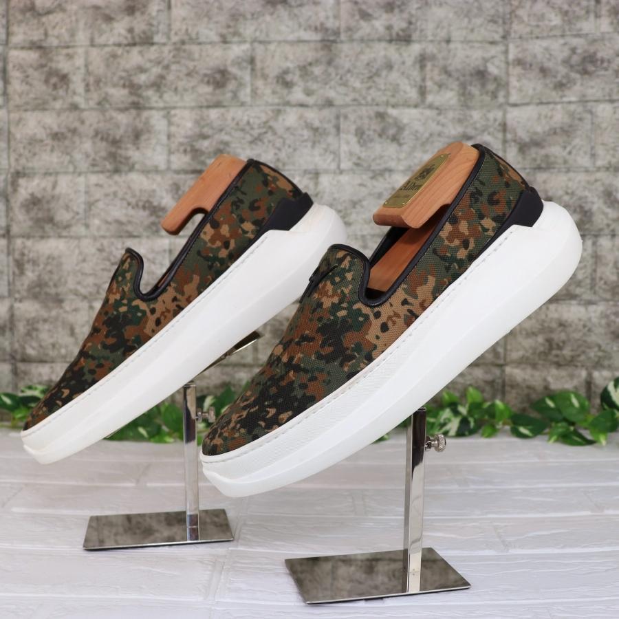 ジュゼッペザノッティ スリッポン 迷彩柄 39 24.5cm相当 緑×白