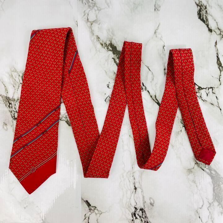 ほぼ未使用 グッチ ビジネスネクタイ シルク100% 濃赤系 レジメンタル