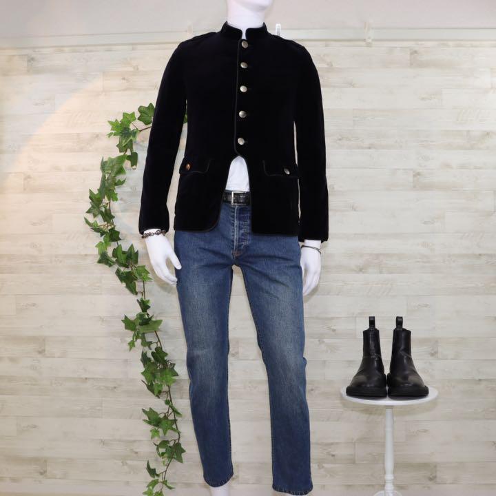 ジョンローレンスサリバン ベロアシングルスタンドカラージャケット S 黒