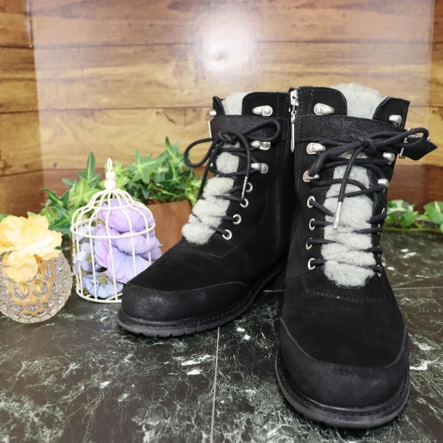 EMU 防水仕様スエードロングブーツ26.0 黒 ムートン レースアップ US8