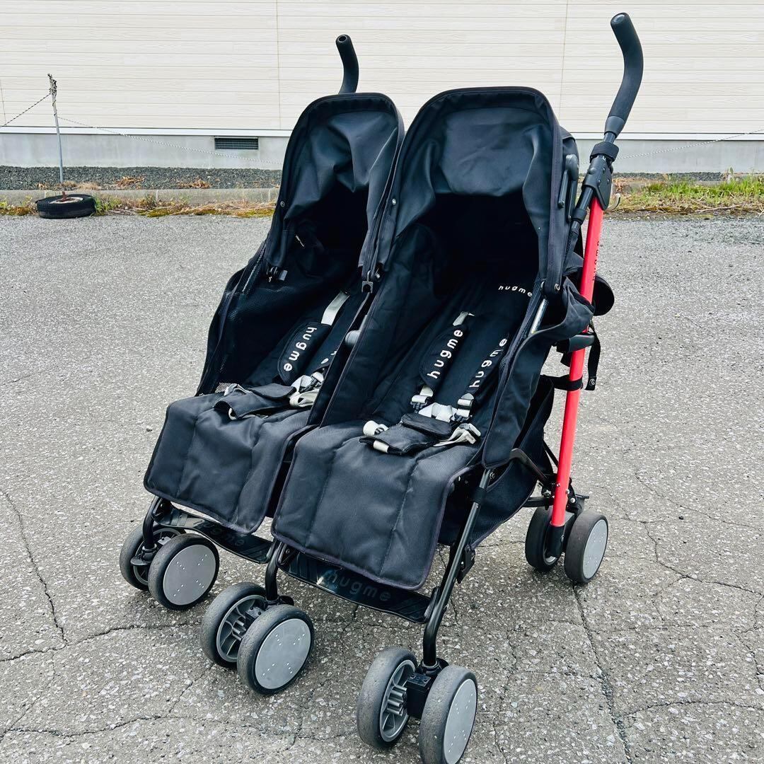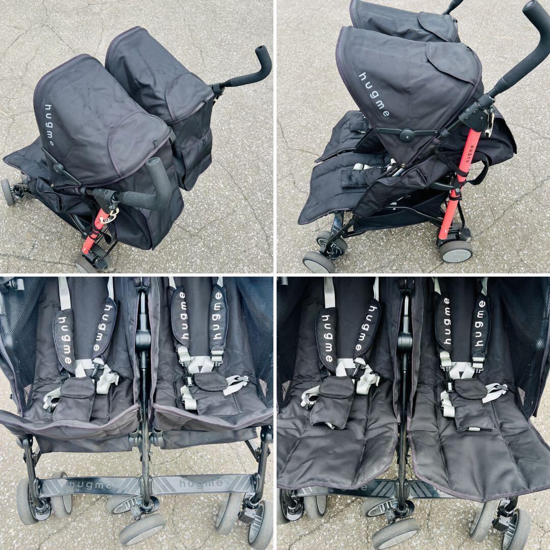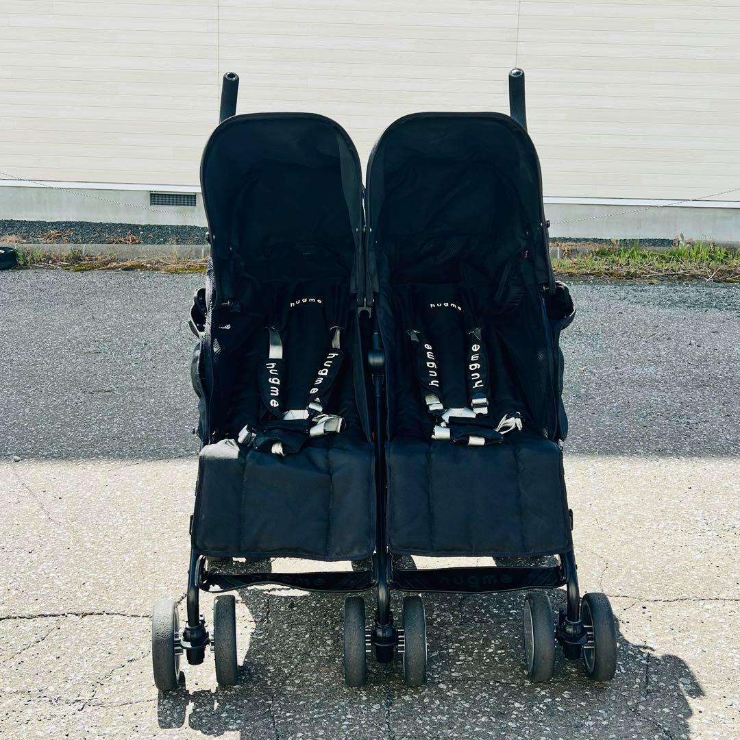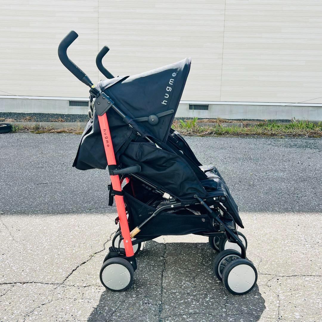 ハグミー ベビーカート2人乗り ブラック 折りたたみ式サンルーフ 車輪ストッパー